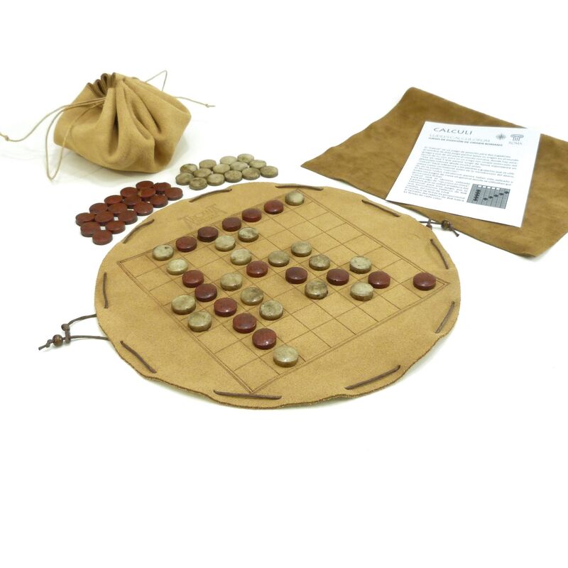 Calculi o cinco en raya, es un juego de origen romano, cuyo objetivo es ir formando líneas de cinco fichas, colocándolas en las casillas libres por turnos, ganando el primero en lograr la disposición de “cinco en línea”.