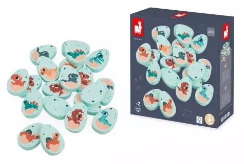 ¡Este es un juego de memoria con un estilo super original! ¡Estos 20 huevos de dinosaurio de madera contienen unos bonitos bebés que buscan a sus gemelos! Ideal para niños a partir de 2 años, ¡el Mémo Dino conquistará a grandes y pequeños porque no hay edad para divertirse y ejercitar la memoria! Este juego atemporal consta de 20 huevos de madera ilustrados con diferentes bebés de dinosaurio. Por turnos, hay que dar la vuelta a los huevos de uno en uno para encontrar dos idénticos. ¡Quien más encuentre gana!