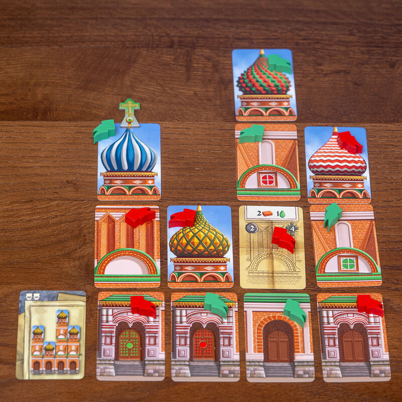 El otoño no es el mejor momento para subirse a un andamio en Moscú, pero sigue siendo mucho mejor que el invierno. El zar Iván quiere resultados, y nuestro equipo demostrará que somos los mejores albañiles de la ciudad. Seguro que si rematamos esos arcos decorativos con las piedras más brillantes, nos aseguraremos de estar en la lista de obreros de confianza del estado.