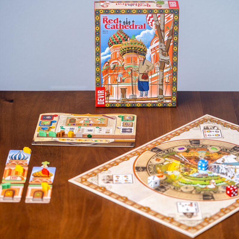 The Red Cathedral es un juego de tipo euro medio, estratégico, en el que los jugadores toman el papel de equipos de construcción. Su trabajo consiste en levantar entre todos la catedral de San Basilio en Moscú, bajo el encargo de Iván el Terrible. Pero solo uno de ellos logrará hacerse con el favor del zar. Durante la partida, los jugadores podrán efectuar una de estas tres acciones: asignarse una sección de la catedral, mandar recursos a dicha sección para construirla, o visitar el tablero de juego para conseguir más recursos. Cada una de estas acciones tiene su propio mecanismo y requiere que los jugadores presten atención a lo que están haciendo sus compañeros. Al asignarse las secciones de la catedral los jugadores irán tomando posesión de espacios en cada una de las columnas que la componen. Cuantas más secciones haya construido y completado cada uno en cada torre, más puntos obtendrá al final de la partida. Los jugadores pueden mandar recursos a las secciones de la catedral que hayan reclamado. Cuando completen cada una de ellas obtendrán recompensas en modo de dinero y puntos de prestigio. Además, podrán instalar decoraciones en secciones completadas para obtener aún más reconocimiento por parte del zar. Esta parte del juego funciona también a modo de reloj, ya que en cuanto un jugador complete la construcción de su sexta sección del juego desencadenará el final de la partida.